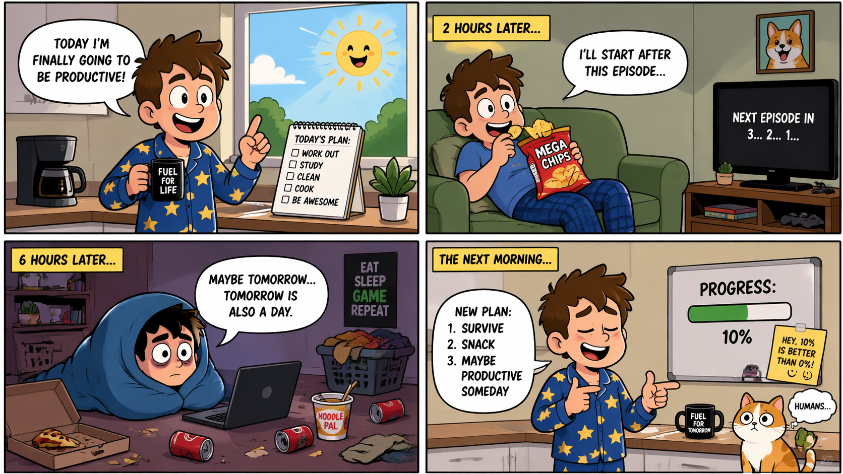 "Alright, so for our first question, we would like you to tell us about your daily life."